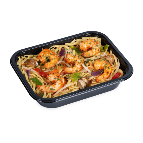 wokgroenten, oosterse saus, scampi
