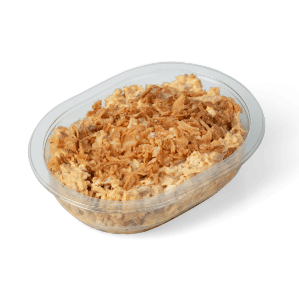 gebakken kippenballetjes (kip, varken), currysaus